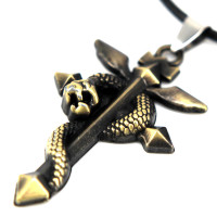 SCOO Fashion Skull Glittery Artificial Gem Cross Amulet Pendant Necklace FS90010JE00