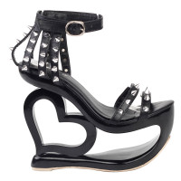 Punk Black Spikes Strappy Heart Heel Wedge Evening Sandals