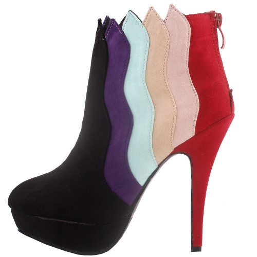 Womens Multicoloured Herring Bone Stiletto Platform High Heel Ankle Boot Bootie