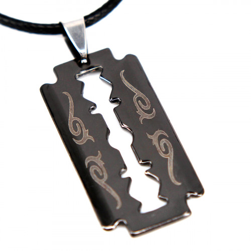 SCOO Unisex Gothic Punk Stainless Steel Razor-Blade Biker Pendant Charm Necklace in Gift Bag